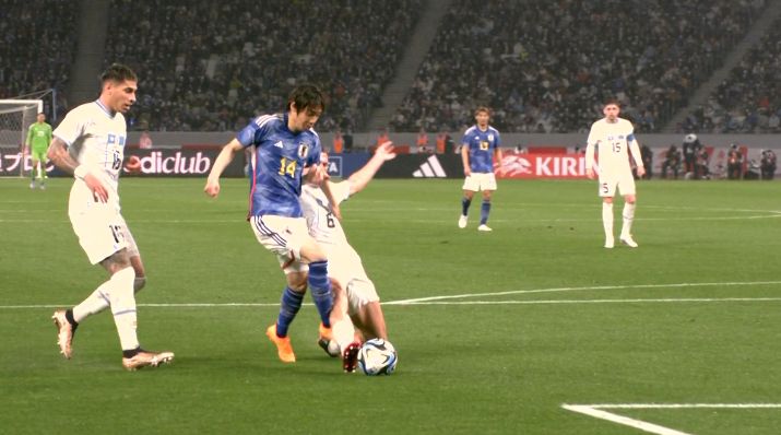 玩球网3月24日讯日本vs乌拉圭,下半场第65分钟,替补登场的伊东纯也禁区内被放倒,裁判判罚点球,观看VAR后裁判取消点球判罚