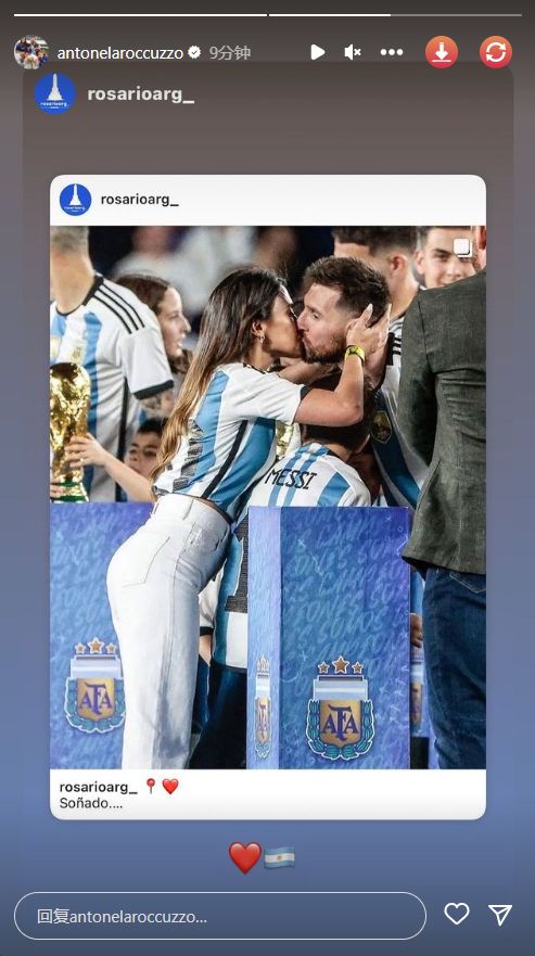今日糖份过量????安东内拉转发与梅西亲吻照????