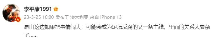媒体人李平康:“昆山这边如果把事情闹大,可能会成为足坛反腐的又一条主线,里面的关系太复杂了…… ”