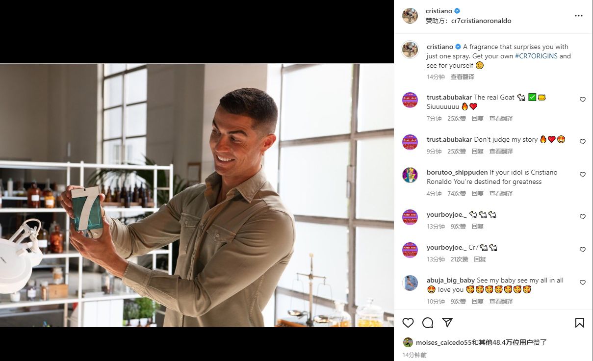 玩球网3月25日讯C罗今日在社媒晒出了自己的专属品牌香水“cr7origins”,这款香水的由法国的调香师调制,他的意义是“回归本源”。C罗在社媒写到:“喷一下就让你惊讶不已的香水,快拥有你自己的cr