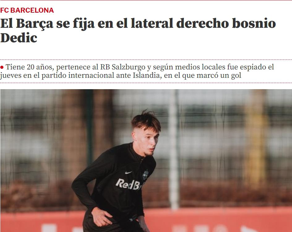 玩球网3月25日讯世体援引波黑媒体的消息,巴萨对20岁的波黑小将阿马尔-德迪奇很感兴趣。 3月24日波黑对阵冰岛队的比赛中,巴萨派人现场观看了比赛考察了德迪奇,而德迪奇也在本场比赛打入一球。今年20岁的德迪奇司职右后卫,目前效力于萨尔茨堡红牛,本赛季作为主力登场26次有1球3助攻。巴萨方面希望能够补强右路防守位置。 身高180cm的德迪奇目前身价为1000万欧,他与萨尔茨堡红牛的合同到2027年,去年9月份曾当选俱乐部月最佳球员。 (任意门) |