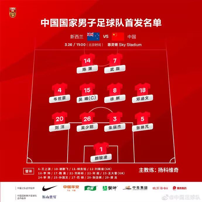 玩球网3月26日讯 11:00国足vs新西兰首发出炉,阵型依旧为442