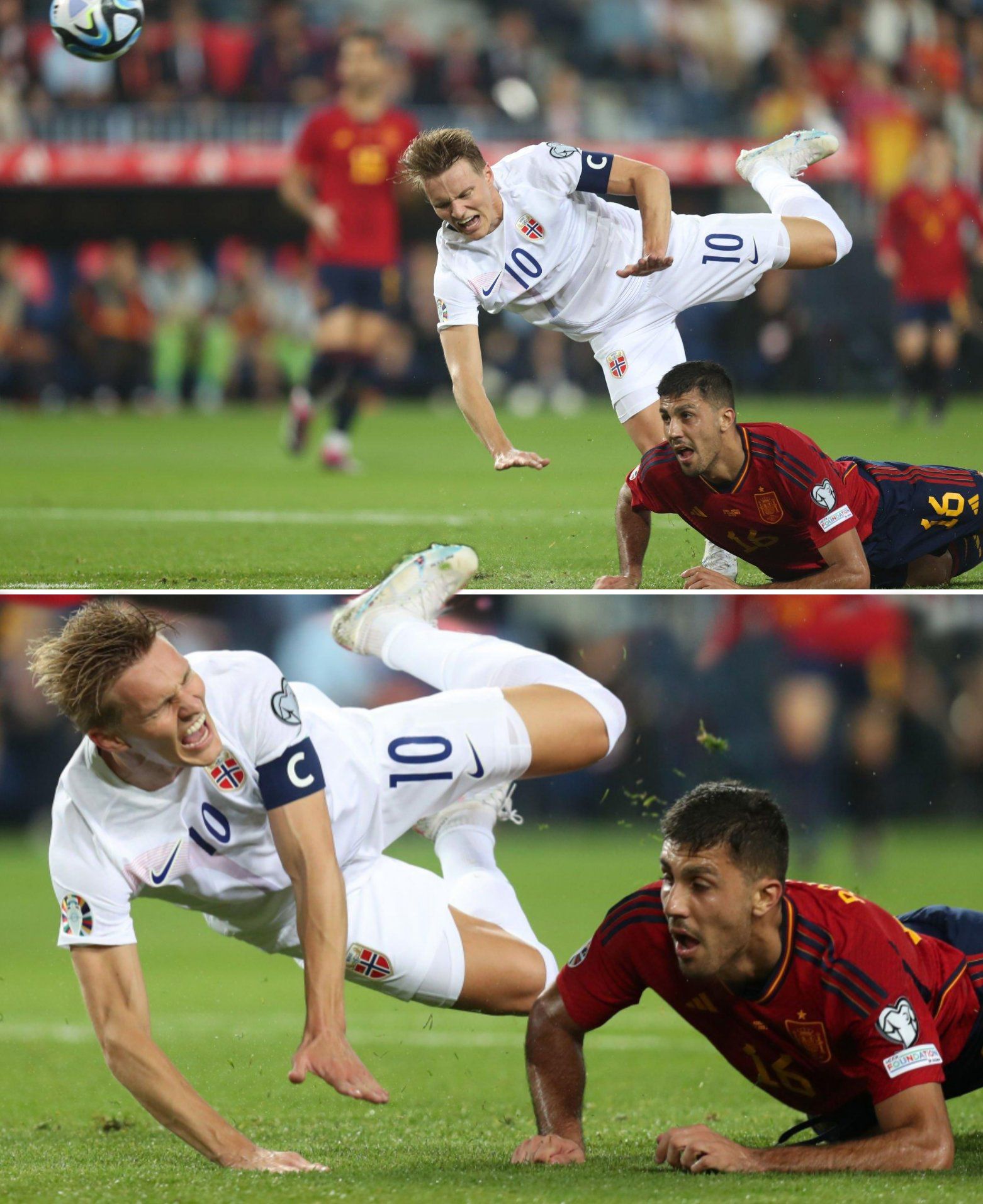 玩球网3月26日讯欧预赛首轮,西班牙3-0战胜挪威。比赛第15分钟,禁区内厄德高遭到罗德里飞铲后痛苦倒地,裁判没有任何表示。赛后接受挪威媒体TV2的采访时,厄德高谈到了这个问题。厄德高表示:“我非常确
