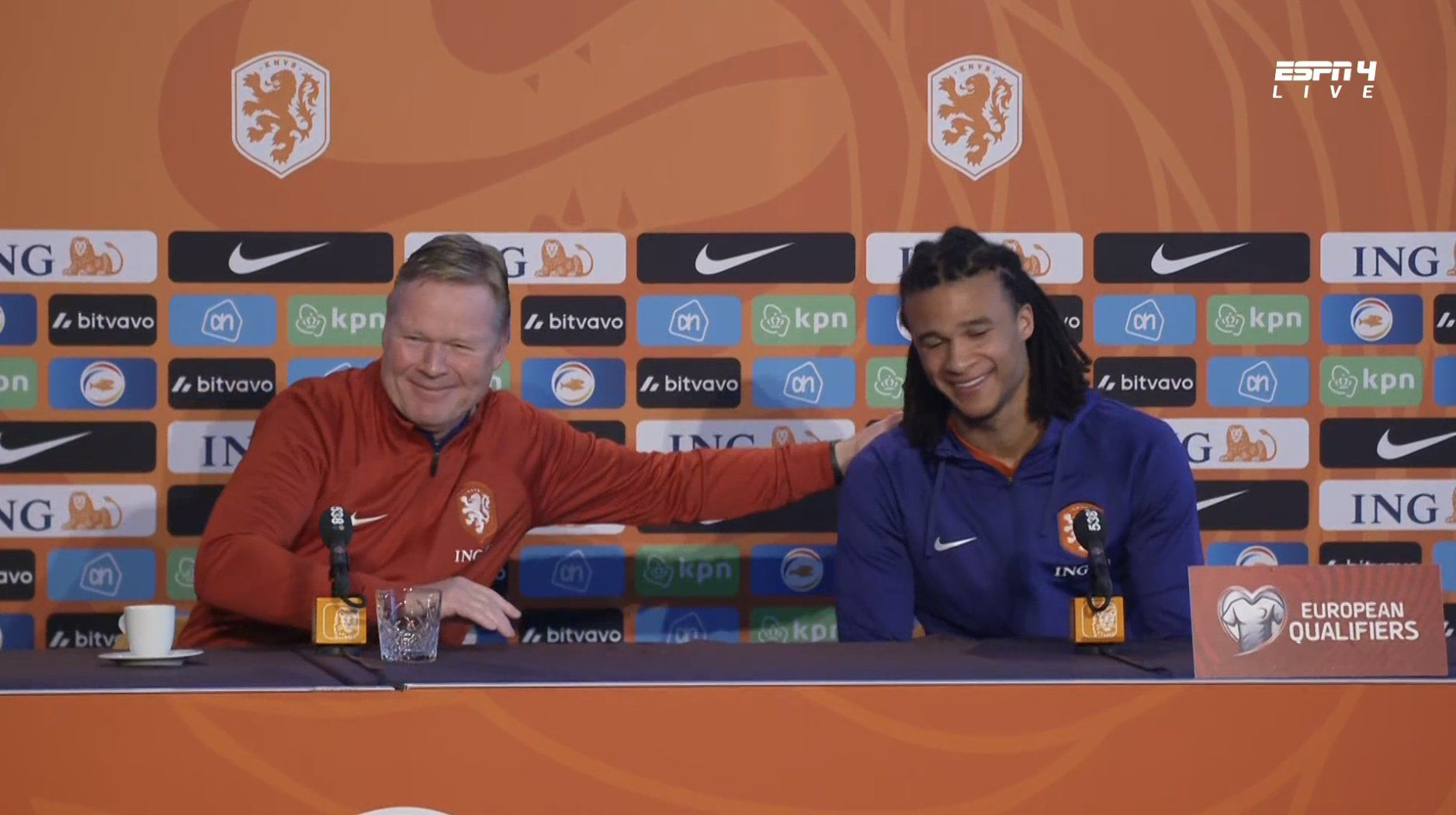 玩球网3月26日讯北京时间3月28日2:45,荷兰将迎来欧预赛第二个对手直布罗陀,主帅科曼出席赛前发布会,谈到了一同出席的曼城后卫阿克。科曼:我觉得阿克发展自己的方式令人难以置信。他是我们想要的榜样。