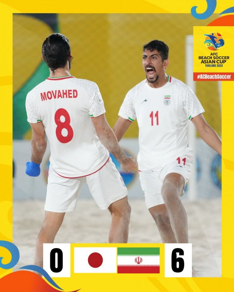 玩球网3月26日讯在今天进行的2023年沙滩足球亚洲杯决赛中,伊朗队6-0大胜日本队,历史上第三次夺得该项赛事冠军。比赛开始后,伊朗队很快进入状态,在第4分钟和第8分钟连入两球。随后,伊朗队乘胜追击,