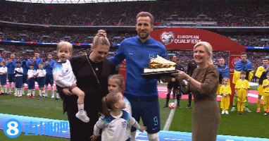 玩球网3月26日讯欧洲杯预选赛C组 英格兰vs乌克兰,赛前,凯恩携妻子和孩子们领取英格兰队史射手王金靴。
