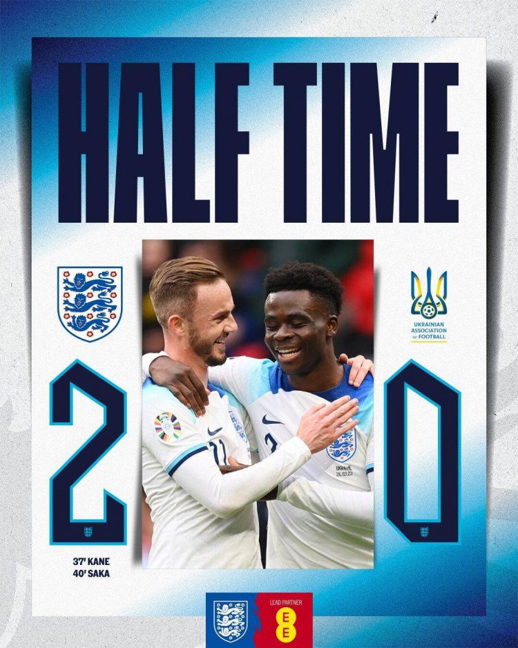 玩球网3月27日讯 北京时间3月27日0点,欧洲杯预选赛C组英格兰对阵乌克兰。上半场,萨卡助攻凯恩打破僵局后自己打进一脚世界波。上半场比赛结束,英格兰2-0乌克兰。 【比赛关键事件】 第36分钟,凯恩策动进攻,萨卡右路调整后传中,凯恩自己跟进包抄垫射破门,英格兰1-0乌克兰。↓ 第39分钟,萨卡大禁区前沿右侧兜出一脚世界波洞穿球门,英格兰2-0乌克兰。↓ 【比赛焦点瞬间】 凯恩赛前领取英格兰历史最佳射手的奖杯。↓ 第8分钟,凯恩禁区内倒地,主裁判并无表示。↓ 第14分钟,亚列姆丘克单刀机会稍稍偏出,但这球也越位在先。↓ 第16分钟,英格兰右路传中,门将接球脱手,麦迪逊上抢时冲撞门将犯规。↓ 第29分钟,英格兰前场右路任意球机会,凯恩门前抢点打高,但这球也是越位在先。↓ 上半场比赛结束,英格兰2-0乌克兰。 【双方首发以及替补信息】 英格兰首发:1-皮克福德、2-沃克、3-奇尔维尔、4-赖斯、5-斯通斯、6-马奎尔、7-萨卡、8-亨德森、9-凯恩、10-贝林厄姆、11-麦迪逊 英格兰替补:13-拉姆斯代尔、22-福斯特、12-特里皮尔、14-格伊、15-戴尔、16-格拉利什、17-菲利普斯、18-加拉格尔、19-伊万托尼 乌克兰首发:12-特鲁宾、3-斯瓦托克、6-斯特帕宁科、7-穆德里克、8-马利诺夫斯基、9-亚列姆丘克、16-米科连科、17-津琴科、20-苏达科夫、21-卡拉瓦耶夫、22-马特维延科 乌克兰替补:1-卢宁、23-米基塔-舍甫琴科、23-爱德华-索博尔、4-爱德华-萨拉皮、5-谢尔盖-斯托祖科、10-耶夫亨-科诺普良卡、11-多夫拜克、13-丹尼斯-米洛斯尼申科、14-布亚尔斯基、15-维克托-齐甘科夫、18-阿尔特姆-邦达连科、19-亚历山大-匹赫洛诺 (莫维奇) |