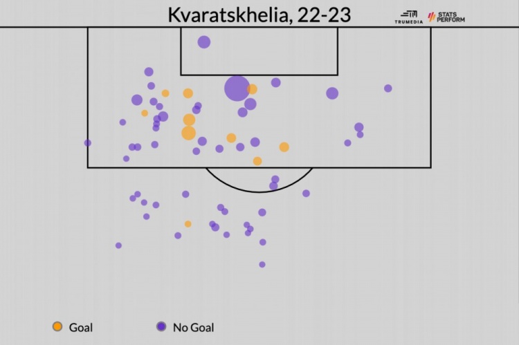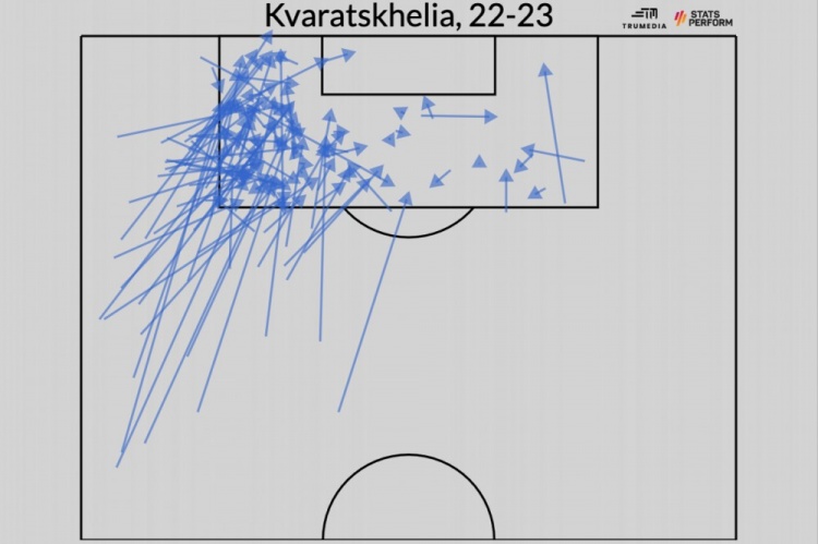 自去年夏天加盟那不勒斯以来,克瓦拉茨赫利亚已经成为世界上最好的年轻球员之一。可是在他登陆意甲之前,鲜有媒体对他关注和报道。所以,我们从他的崛起故事中,能够了解到什么呢?ESPN作者Ryan O'Hanlon就撰文进行了讨论,他认为当下足坛还有不少小联赛中有类似K77这样的球员存在,足球世界不应该让他的成功变成一种偶然。 一年前,世界上最好的边锋都在西班牙、法国、意大利、德国或者英格兰某个地方踢球。换而言之,这就是他们经常踢球的地方。 过去的那个赛季里,维尼修斯在皇马度过了自己职业生涯中,真正意义上的第一个球星赛季。马内和萨拉赫在利物浦完成了两人联手横扫四方的最后一舞。莱奥则是帮助AC米兰,赢得了阔别十多年的意甲冠军荣誉。他们都是现代足球中,处于关键地位的关键球员。至少就我们所知,情况是这样的。 不过事实上,上赛季这个时候,另一位当下世界上最好的边锋之一,甚至连球都没有办法踢。去年3月俄乌战争期间,国际足联宣布所有在俄罗斯的外籍球员都将被准许暂停合约,并可以自由加入其他国家的新球队。2022年3月24日,一名你此前可能没有听过名字的球员,加盟了一支你从未听过名字的球队。 这位叫克瓦拉茨赫利亚的球员,在离开俄罗斯之后,回到了格鲁吉亚,并为家乡球队巴统迪纳摩踢了11场比赛,结束了自己混乱的2021/2022赛季。随后,他又在去年夏天以1150万欧元的价格转会那不勒斯。 几乎就是在加盟那不勒斯之后的一瞬间,克瓦拉茨赫利亚不仅成为了一名你所熟知的球员——由于他的名字和他令人难以抗拒的足球技巧——还变成了一名轰动欧洲的球员。克瓦拉茨赫利亚登陆意大利之后,立马就展现出了自己惊人的实力,成为史上首位征战意甲首赛季就进球助攻皆上双的球员。而且要注意,现在还只到3月份。 无论你如何称呼他——克瓦拉茨赫利亚、克瓦拉、克瓦拉多纳(他与马拉多纳名字的结合)、还是K77—— 有一个事实都是不可否认的。这位22岁的格鲁吉亚攻击手与尼日利亚前锋奥斯梅恩,为那不勒斯的进攻端带去了极强的动力,将帮助球队赢得阔别三十多年的意甲冠军。不仅如此,根据FiveThirtyEight的数据预测,他们比世界上任何其他球队都更有概率杀入欧冠决赛。 在K77和奥斯梅恩的带领下,那不勒斯展现出了极强的进攻能力 当下足坛,皇马每年在巴西新秀身上花费数千万美元,巴萨几名首发中场球员甚至在美国一些州都达不到自己开车的年龄。姆巴佩在18岁之时就已经身价过亿,而像萨卡、阿诺德这样的英超球员,他们在25岁之前似乎就已经奠定了自己球队传奇的基础。 然而即便大环境如此,我们仍需明白:就在去年5月份,世界上最好的球员之一,还在格鲁吉亚的顶级联赛踢球,效力于欧洲排名第543位的球队(源于ClubElo.com的数据)。 为什么欧洲豪门之前都没有注意到K77呢?他到底是怎么被发现的?他的崛起,对当下球队的运营方式有什么启示呢? “克瓦拉多纳”的崛起 说K77是“凭空崛起”,其实并不完全正确。2018年的时候,《卫报》就已经关注到他,并将他列为全球60位顶尖青年球员之一。然而所有人都明白,所谓的“高潜少年”,其中有很大一部分球员从未真正成为球星,有些人甚至都没有成为职业球员。 2019年2月,K77从格鲁吉亚的鲁斯塔维租借加盟莫斯科火车头,出场7次,攻入1球。虽然这笔交易最终没有成为永久转会,但当时莫斯科火车头的主帅尤里-谢明表示:“失去这位极具天赋的男孩,让我很痛苦。”随后,K77在2019年夏天加盟俄超中游球队喀山鲁宾。 本赛季在那不勒斯,K77平均90分钟能贡献1.04粒非点球进球(包含进球和助攻)——他已经攻入10球,送出12次助攻。本赛季到目前为止,欧洲五大联赛中,所有出场时间不低于1500分钟的球员中,只有四人的效率比K77更高:内马尔、哈兰德、奥斯梅恩和梅西。 那么以K77在意甲的表现,反推他此前在俄超的表现,当年他是否已经在俄超“神挡杀神,佛挡杀佛”了呢? 其实并非如此。 一年前,K77还效力于格鲁吉亚联赛的球队 当年征战俄超之时,K77只不过是一名极其普通的球员。征战俄超的四个赛季里,他总共攻入10球,送出10次助攻。折算下来,平均90分钟贡献0.38球包含进球和助攻)。对于一名边锋而言,这仅仅是欧洲主流联赛的平均水准。 当然,俄超倒也谈不上是欧洲主流联赛之一。而且根据ClubElo的评级,欧洲有12个联赛的排名高于俄超。这个联赛的水准与意大利乙级联赛差不多。 也正因为如此,K77几乎就是一夜之间从一名意甲平庸攻击手,成为了意甲的超级杀手。 数据公司MRKT Insights与世界各地球队有着广泛合作,他们的联合创始人之一蒂姆-基奇说:“我认为没有人能预测到K77在意甲的表现有多好,或者他能多快地适应。” “如果你只看他本赛季的进球数和助攻,你会将他归类为一名非常令人兴奋,但状态不一定稳定的边锋。他总有着非凡的控球能力和对抗意愿,而且他在球场大部分区域都能做到这一点。他也尝试了不少射门,但都在低价值的区域。” 在俄罗斯,K77是那种将足球美学和效率尽可能分开的球员。他的带球能力使他在球探和教练面前脱颖而出,但就如同许多年轻的、喜欢炫技的球员一样,他并没有真正帮助球队去赢球。当他拿球之时,他会放慢控球速度,将太多仍有可能继续推进的机会变成了远射,而这些机会很少会转化为进球。 尽管也有特例存在,但大多