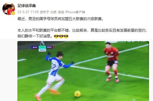 媒体人徐泽鑫消息,最近有男足的国字号球员将加盟五大联赛的次级联赛。徐泽鑫:最近,男足的国字号球员将加盟五大联赛的次级联赛。本人的水平和联赛的平台都不错,比较契合,算是比较务实且有发展前景的签约,咱们静