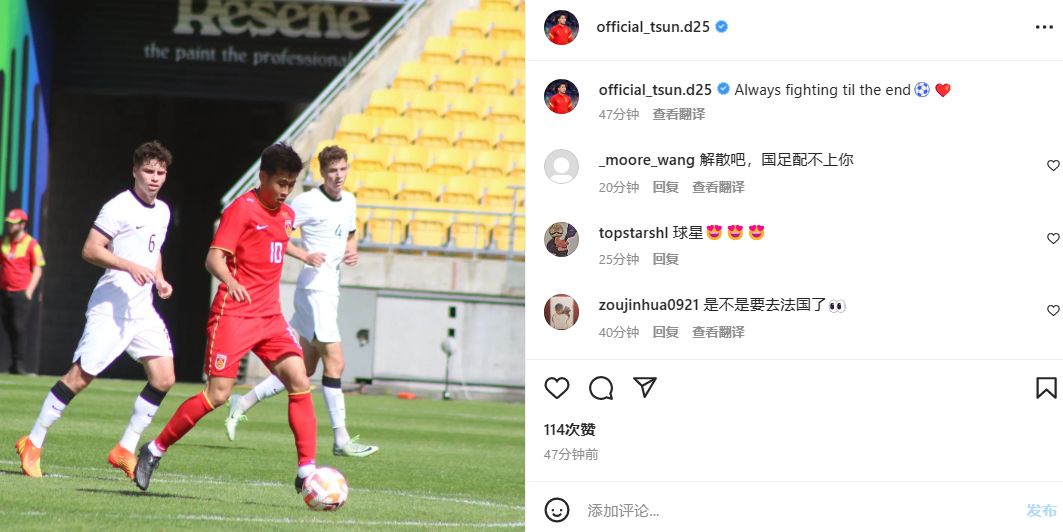 玩球网3月27日讯今天,戴伟浚在个人社媒晒出了随亚运队在新西兰进行热身赛期间的照片。此前亚运队两场对阵新西兰U22的比赛,戴伟浚都代表亚运队登场,而且他还穿上了象征核心的10号球衣。戴伟浚在INS晒出