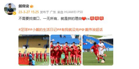 玩球网3月27日讯今天,戴伟浚在个人社媒晒出了随亚运队在新西兰进行热身赛期间的照片。 此前亚运队两场对阵新西兰U22的比赛,戴伟浚都代表亚运队登场,而且他还穿上了象征核心的10号球衣。 戴伟浚在INS晒出了比赛期间的照片并配文自勉写道:“会一直战斗到最后!”有网友在评论里问道:“是不是要去法国了?” 同时,戴伟浚也在微博晒照并写道:“不需要找借口,一无所有,就是拼的理由!” 【相关】留洋再+1?媒体人:有男足国字号球员将加盟五大联赛的次级联赛 (德里森) |