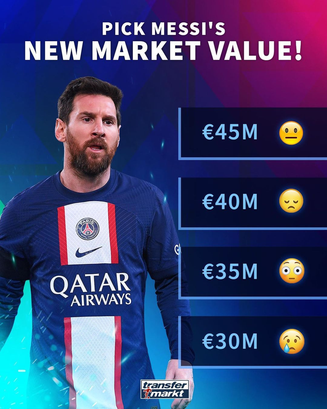 梅西目前身价5000万欧元,猜一猜下次德转更新后,梅西的身价会是多少?