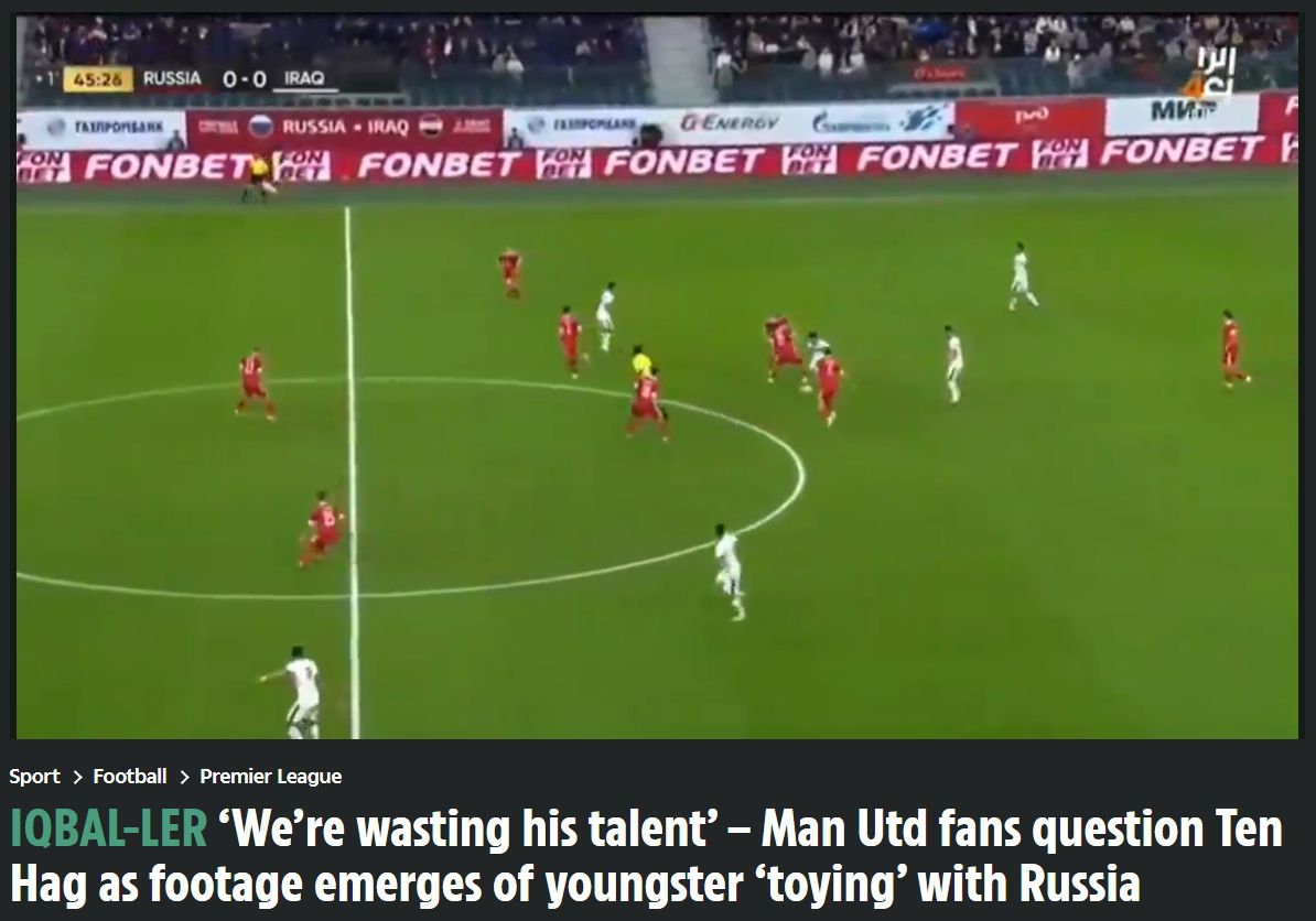 玩球网3月27日讯 友谊赛伊拉克0-2不敌俄罗斯,此役曼联19岁小将齐达内-伊克巴尔上演伊拉克国家队首秀,表现亮眼。 比赛中,伊克巴尔中场得球连续拉球摆脱,戏耍俄罗斯中场后送出过顶直塞,差点形成单刀,可惜稍大了一点。 太阳报截取了部分球迷的评论,表示球迷抱怨滕哈赫不给机会。 “不明白为什么他还没有得到上场时间,他在季前赛中给人留下了深刻的印象。” “我不知道滕哈赫为什么到现在还没有让他出场!!他有偏见吗????” “我们事实上是在浪费他的才华。” “我是唯一一个在齐达内-伊克巴尔身上看到弗朗基-德容的人吗?” …… (WinksK4) |