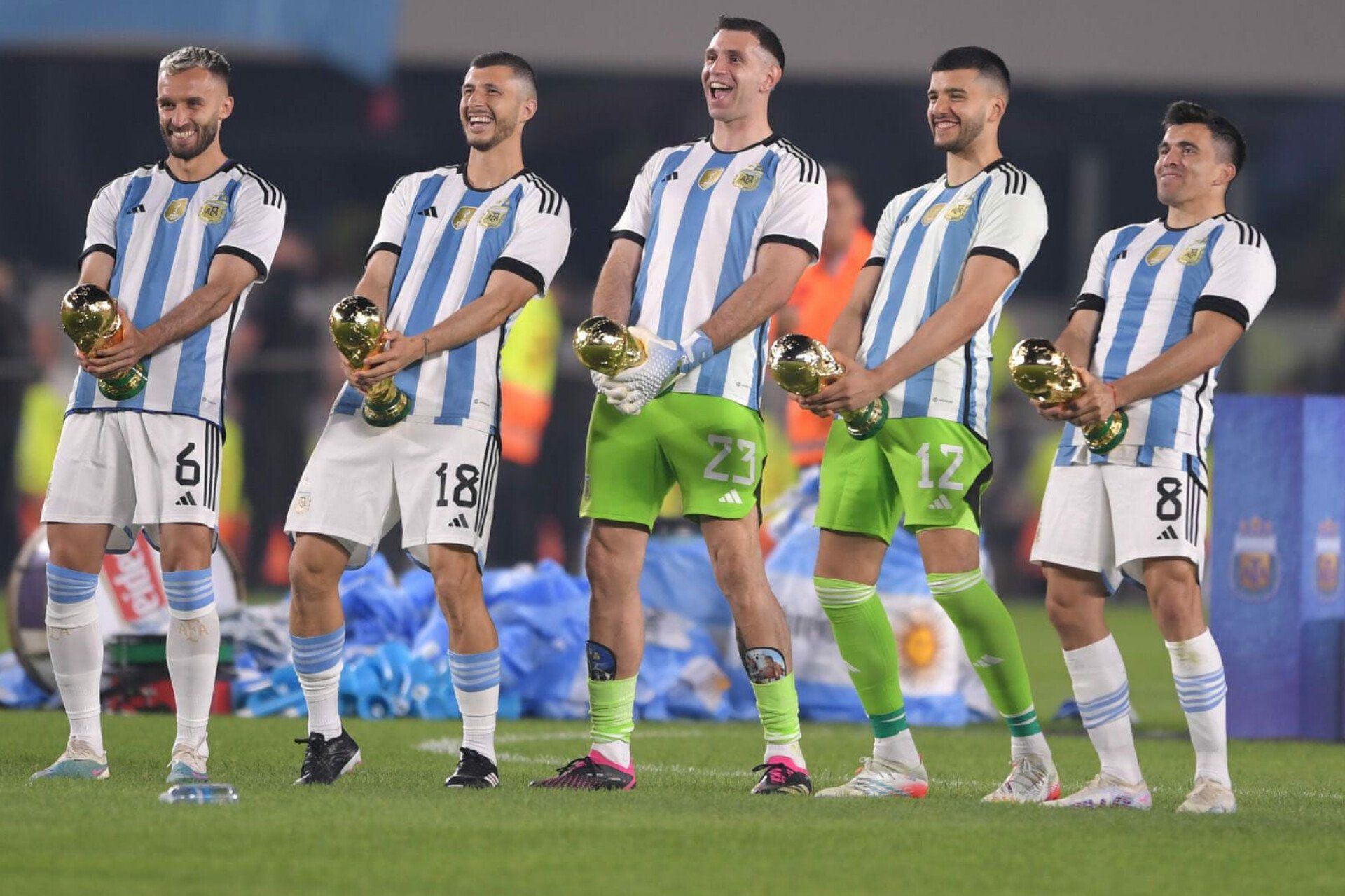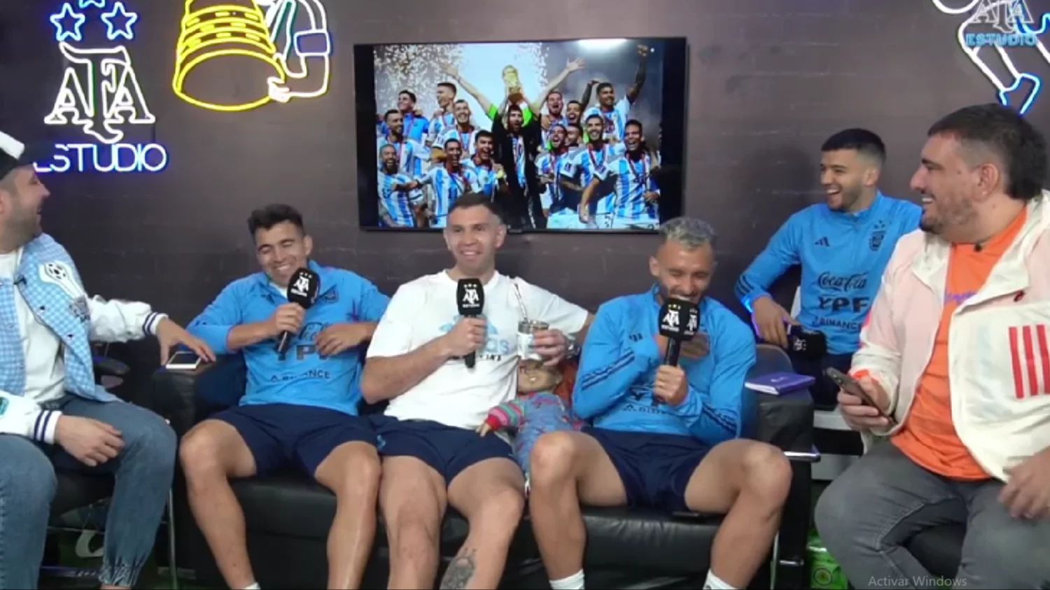 玩球网3月27日讯阿根廷门将马丁内斯在世界杯颁奖典礼上的不雅庆祝动作引发了争议,近日,在接受阿根廷官方AFAEstudio采访时,大马丁谈到了做该动作的原因,但与之前的解释版本不同。大马丁指着旁边的队