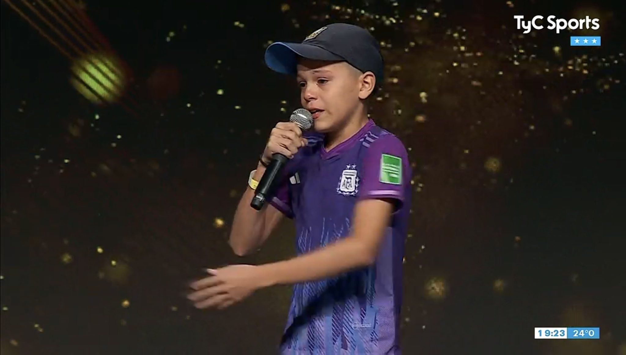 玩球网3月28日讯南美足联举行典礼庆祝阿根廷夺冠,在现场一名来自阿根廷的小男孩发表了演讲,他的话让斯卡洛尼和恩佐流下了眼泪。小男孩:我要感谢斯卡洛尼教练、迪布、梅西。我没有说出他们所有人的名字因为那会