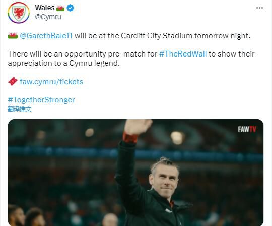 玩球网3月28日讯威尔士足协官方宣布,主场迎战拉脱维亚的比赛之前将为传奇球星贝尔举行告别仪式,这场比赛将在卡迪夫城球场举行。届时,现场的威尔士球迷有机会向这名功勋球员致敬。2006年5月27日,贝尔为