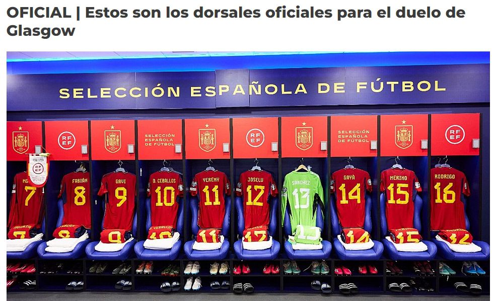 玩球网3月28日讯 北京时间周三凌晨的欧预赛,西班牙将前往客场挑战苏格兰。目前,西班牙国家队已经公布了本场比赛大名单,奥尔莫和巴尔德落选。 以下是具体名单: 1-凯帕 2-佩德罗-波罗 3-大卫-加西亚 4-纳乔 5-拉波尔特 6-伊尼戈-马丁内斯 7-莫拉塔 8-法比安-鲁伊斯 9-加维 10-塞巴略斯 11-皮诺 12-何塞卢 13-罗伯特-桑切斯 14-加亚 15-梅里诺 16-罗德里 17-阿斯帕斯 18-奥亚萨瓦尔 19-尼科-威廉姆斯 20-卡瓦哈尔 21-伊格莱西亚斯 22-祖比门迪 23-拉亚 (二怪) |