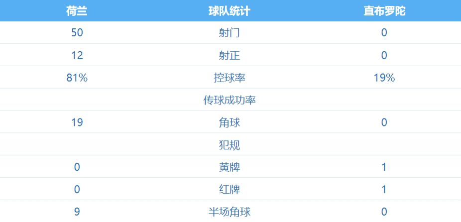 玩球网3月28日讯欧预赛小组赛第2轮,德佩破门,阿克双响,荷兰3-0战胜直布罗陀。荷兰队全场狂轰50脚射门,仅打进3球,荷兰队主帅科曼在补时最后时刻脸色铁青,顺带吐了口浓痰。全场数据↓(木辛)