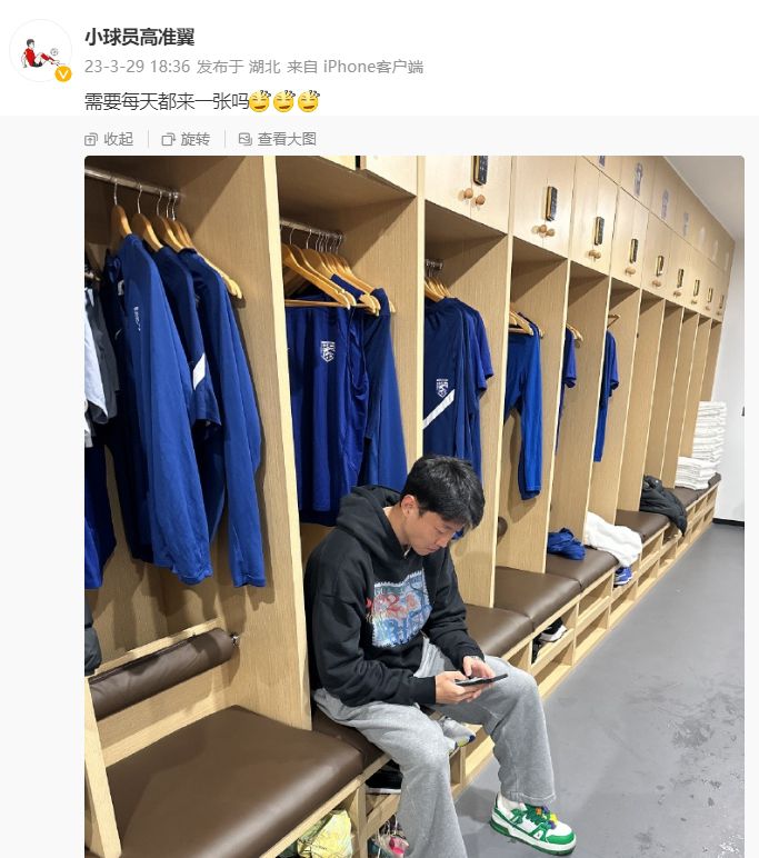 玩球网3月29日讯针对山东媒体人左海涛称其“这个休赛期就像人间蒸发了一样”的言论,武汉三镇球员高准翼继续在社媒进行了回应。今天,高准翼又在个人社媒晒出了他在更衣室内的照片,并反问写道:“需要每天都来一