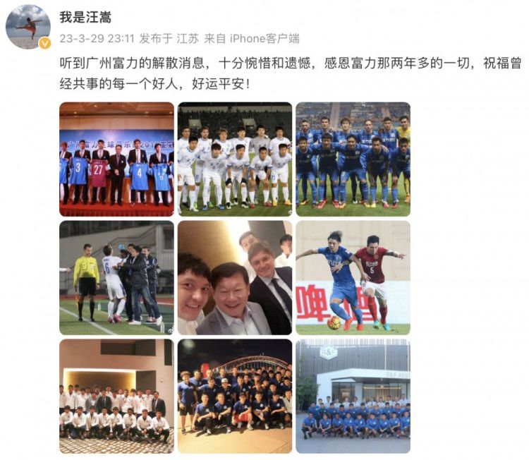 玩球网3月29日讯 在广州城俱乐部宣布暂停运营后,曾经在此效力过的老将汪嵩更新社媒,纪念了老东家的离开。 2015年和2016年,汪嵩曾经在广州富力(广州城的前身)效力了两个赛季。如今,即将40岁的汪嵩还在继续自己的职业生涯,但他的老东家广州城却已经成为了历史。对此,汪嵩在社媒晒照并感叹写道: “听到广州富力的解散消息,十分惋惜和遗憾,感恩富力那两年多的一切,祝福曾经共事的每一个好人,好运平安!” (德里森) |