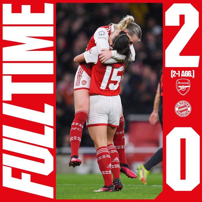 玩球网3月30日讯女足欧冠1/4决赛次回合,阿森纳女足2-0拜仁女足,总比分2-1晋级女足欧冠半决赛,对手将是巴黎女足与狼堡女足之间胜者。 比赛第19分钟,马阿努姆接到队友莉娅-威廉森的做球,禁区外直接拔脚怒射,拜仁女足门将格罗斯鞭长莫及!阿森纳女足1-0拜仁女足,总比分1-1扳平! 比赛第26分钟,凯蒂-麦凯布助攻布莱克斯特纽斯破门!阿森纳女足2-0拜仁女足,总比分2-1反超! 最终全场比赛结束,阿森纳女足2-0拜仁女足,总比分2-1晋级女足欧冠半决赛,对手将是巴黎女足与狼堡女足之间胜者。 (夜神) |