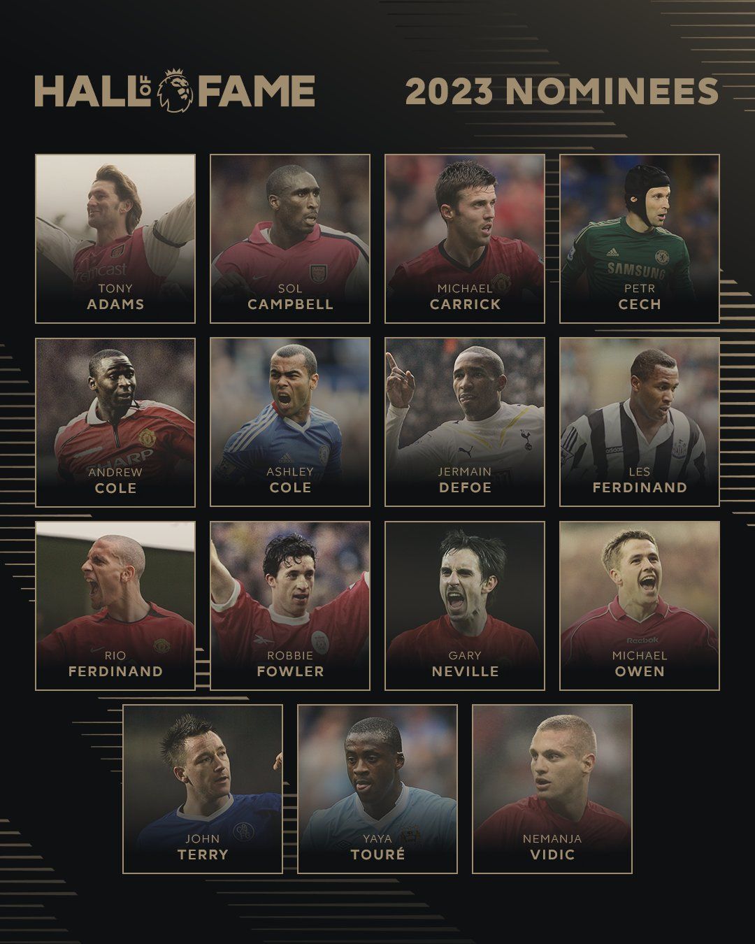 玩球网3月30日讯今日英超官方公布,2023年英超名人堂15人候选名单。欧文、费迪南德、内维尔在列,切赫、特里、亚亚-图雷入选。15人候选名单↓安迪-科尔、阿什利-科尔、加里-内维尔、杰梅恩-迪福、约