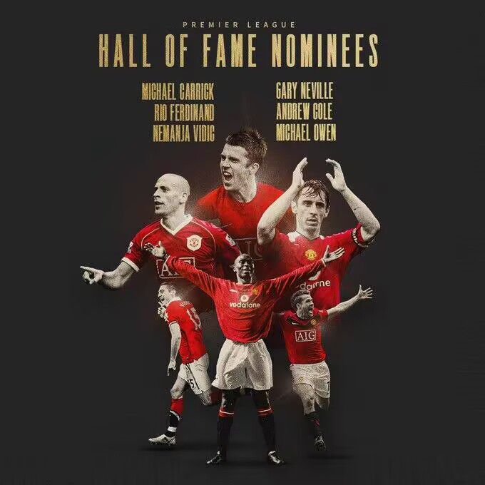 玩球网3月30日讯今天,英超联赛公布2023年英超名人堂15人候选名单,6名前曼联球员进入候选,他们分别是卡里克、费迪南德、维迪奇、加里-内维尔、安迪-科尔和迈克尔-欧文,随后红魔官推列出了这6名球员