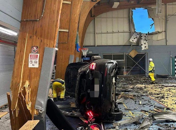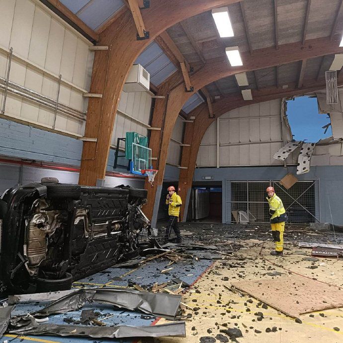 【道路千万条,安全第一条⚠️】比甲OH鲁汶队球员基伊内(SofianeKiyine)昨日遭遇严重车祸:汽车高速撞上环形交叉路口后失控起飞,砸进路边的室内运动场,把墙面砸出大洞……监控画面看非常吓人万幸