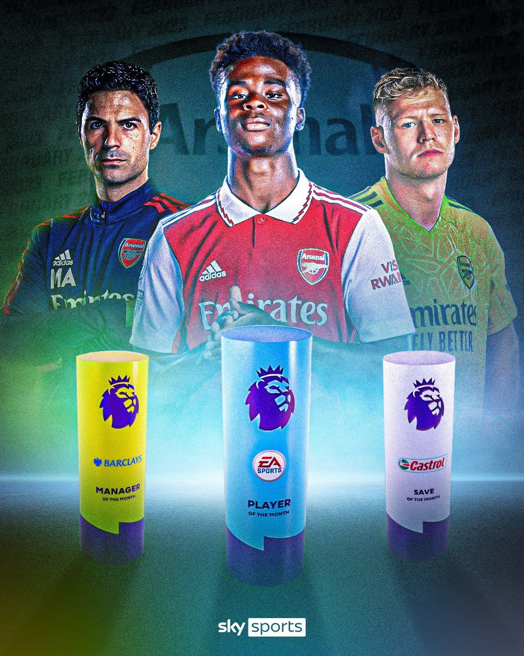 英超3月最佳主帅:阿尔特塔英超3月最佳球员:萨卡英超3月最佳扑救:拉姆斯代尔