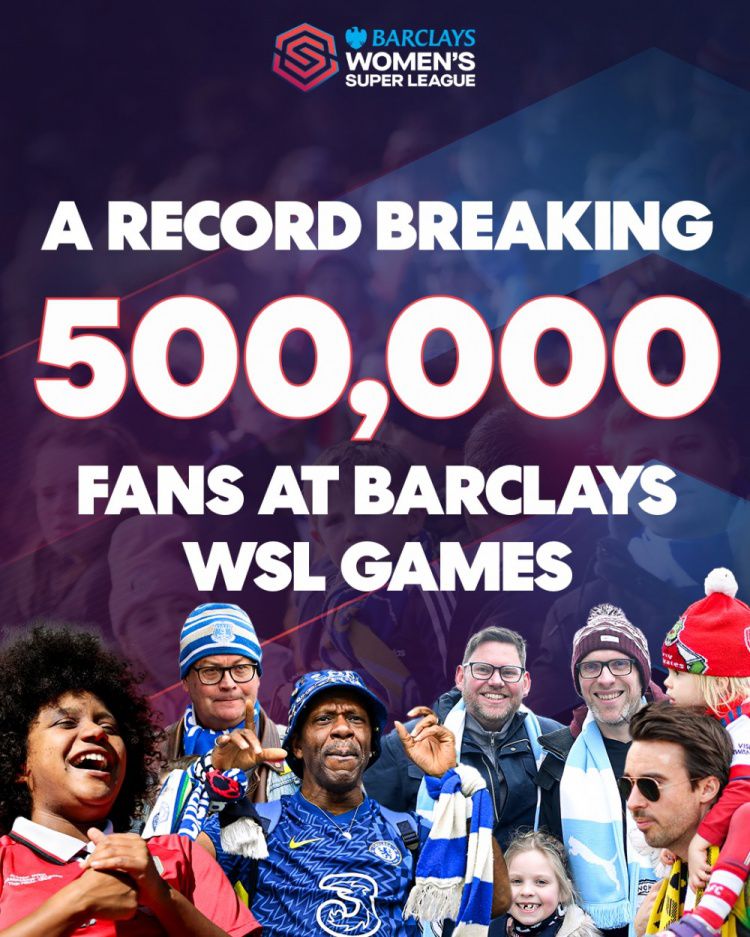 玩球网4月1日讯据女足英超官方报道,本赛季女足英超的现场球迷人数已经突破了纪录。女足英超官方社媒写道:本赛季到目前为止,已经有创新高的50万球迷观看了女足英超比赛,而且现在距离本赛季结束还有6轮比赛。