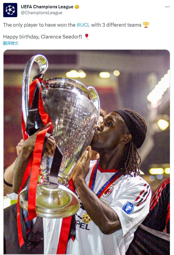 玩球网4月1日讯今天是荷兰传奇球星西多夫的47岁生日,欧冠官方为他送上祝福。欧冠官方账号在社交媒体上晒出西多夫捧杯的照片,并写道:“唯一在三支不同球队赢得欧冠的球员!生日快乐,西多夫!”西多夫职业生涯
