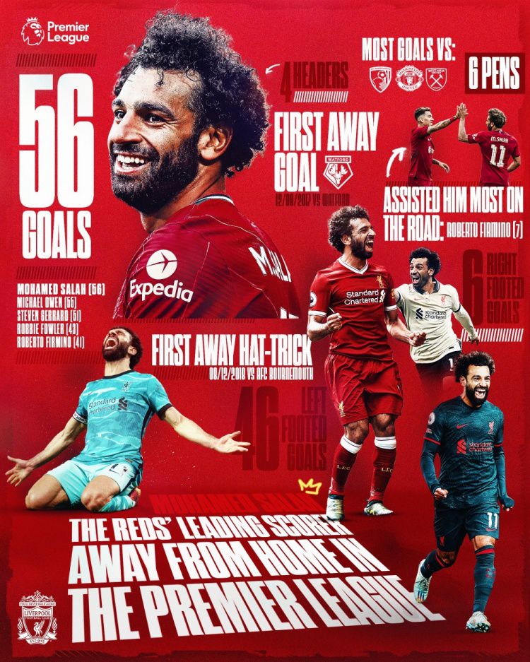 玩球网4月1日讯利物浦官方统计,萨拉赫成为利物浦队史英超客场进球纪录保持者。利物浦本轮客场对阵曼城,萨拉赫破门,他以56球成为利物浦队史英超客场进球纪录保持者,排在他身后的是欧文(55球)、杰拉德(5