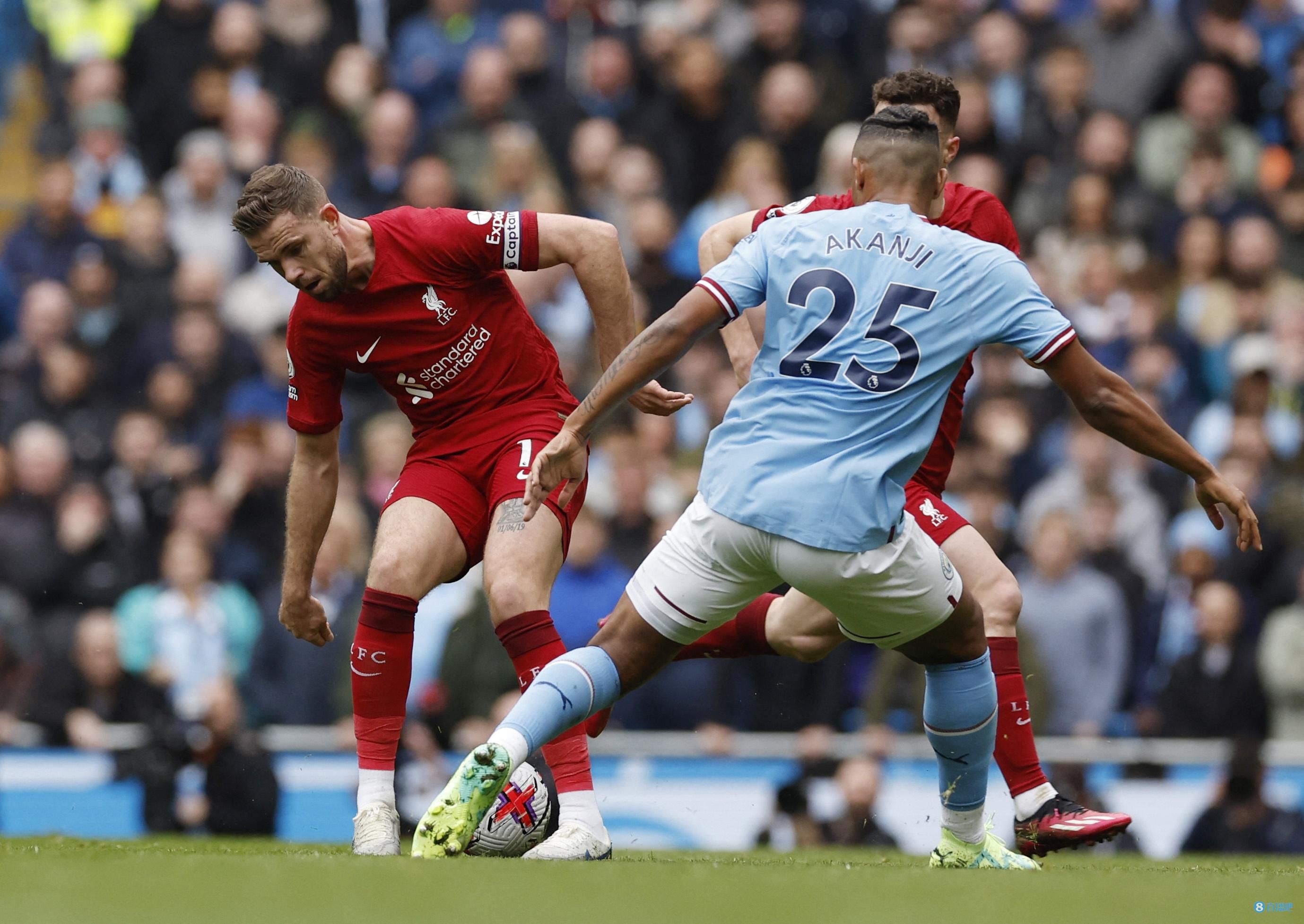 英超第29轮,曼城vs利物浦,上半场精彩进球与争议犯规不断,半场结束两队1-1平。