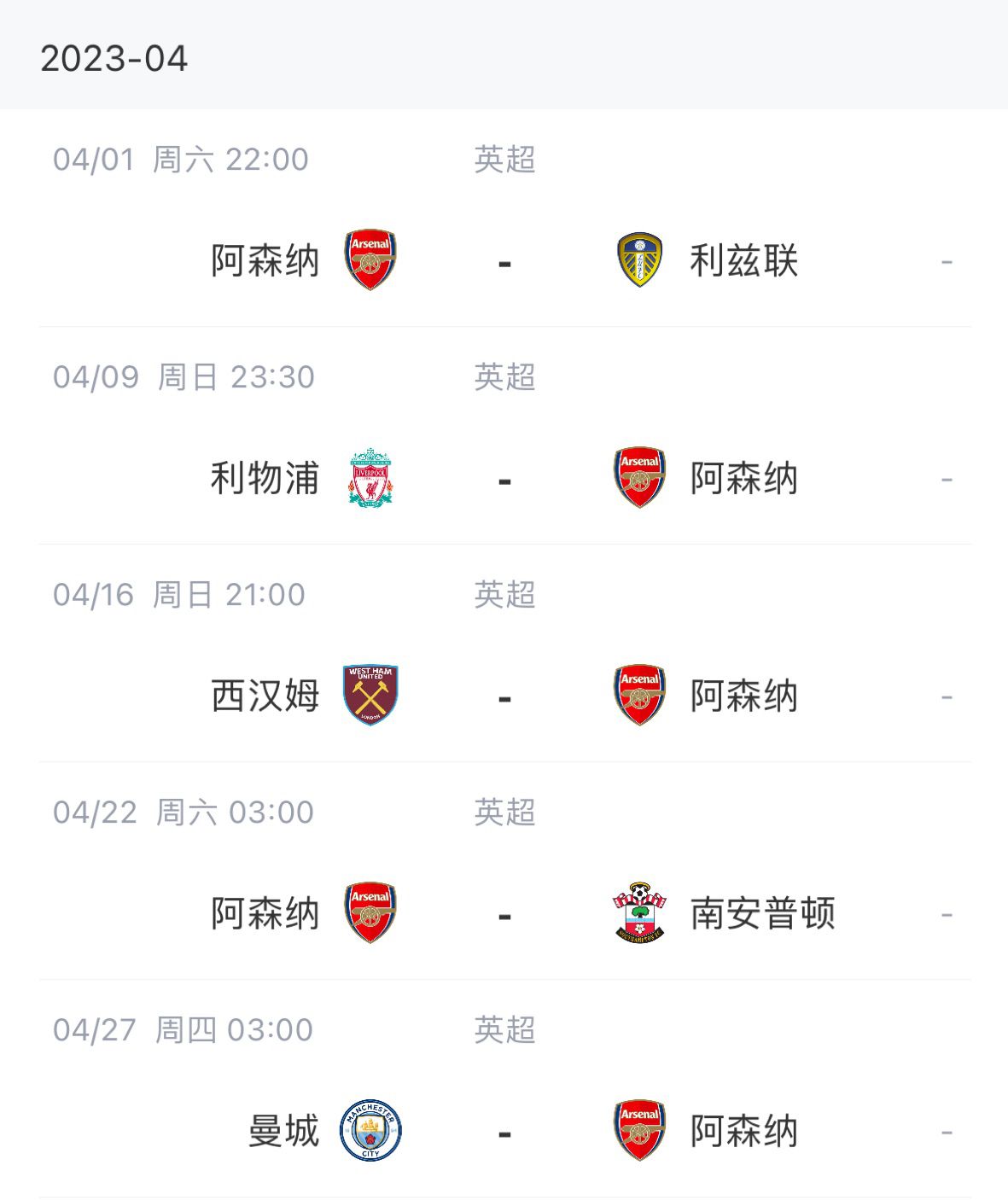 玩球网4月1日讯英超第29轮早先进行的比赛,曼城4-1大胜利物浦。目前英超积分榜上,阿森纳与曼城同赛28场,枪手握有5分的领先优势。北京时间22:00,阿森纳坐镇主场迎战利兹联。曼城与阿森纳本赛季还有