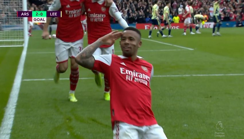 第56分钟,特罗萨德送助攻,热苏斯包抄破门,打入个人本场第二球,阿森纳3-0领先利兹联!