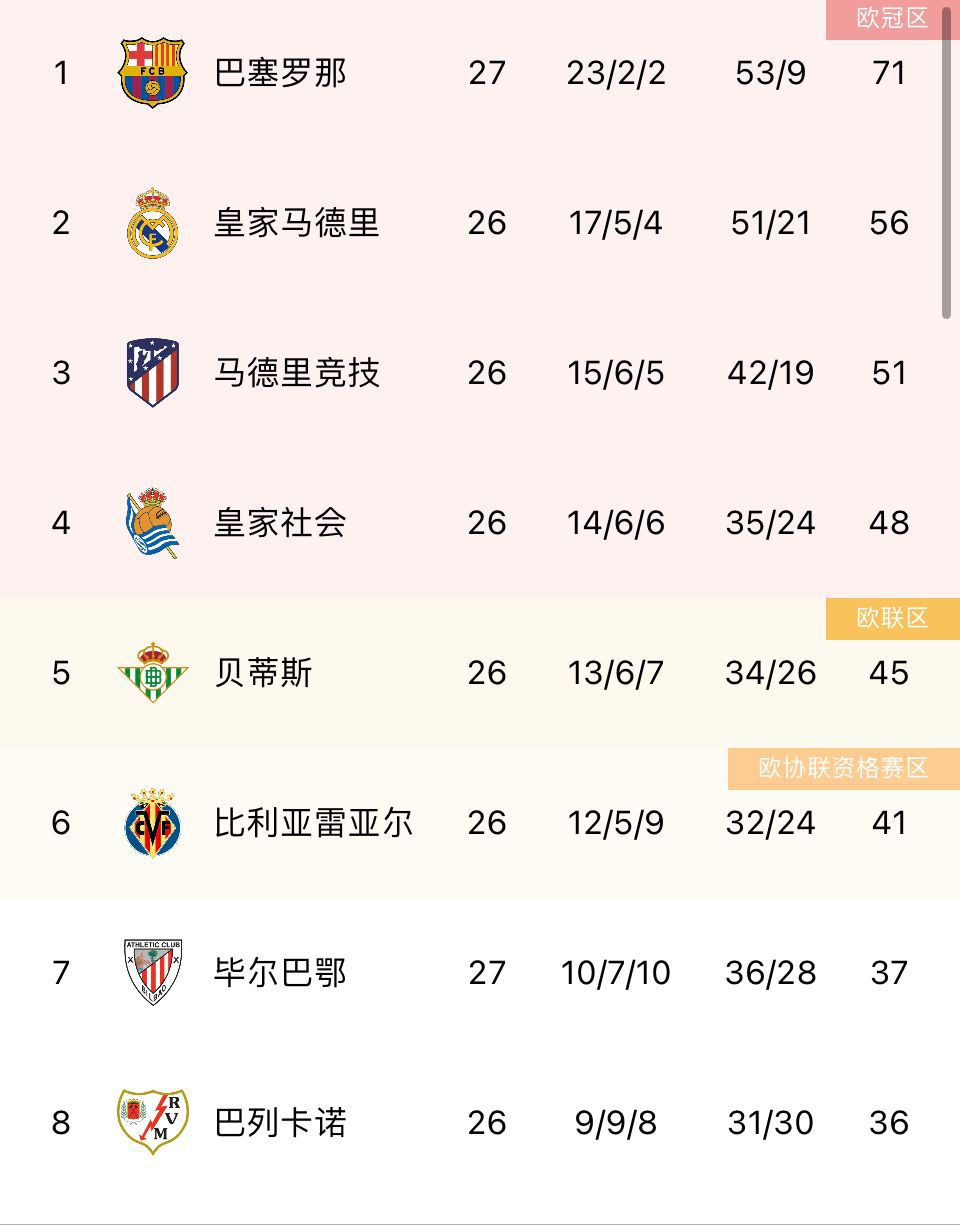 玩球网4月2日讯 西甲第27轮,巴萨4-0轻取副班长埃尔切,积分榜方面,巴萨先赛一轮15分优势领跑。皇马、马竞排在二、三,皇家社会第四。