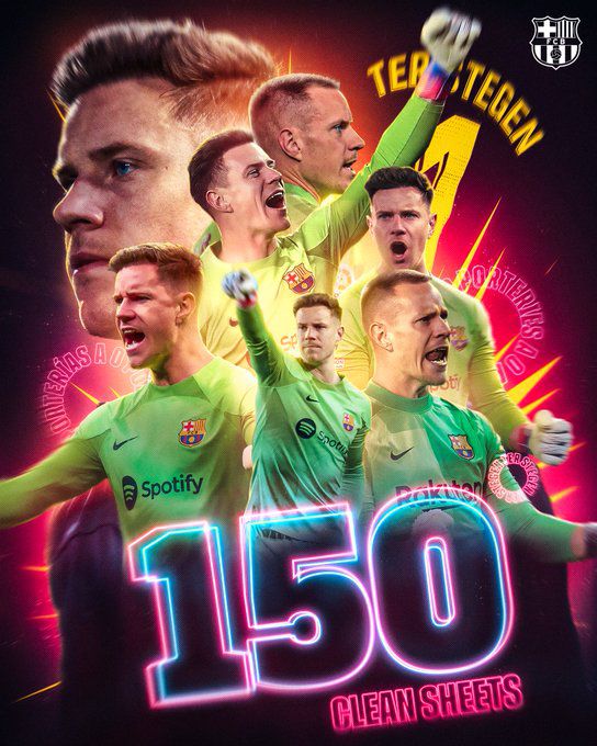 玩球网4月2日讯 在北京时间今天凌晨进行的西甲第27轮比赛中,特尔施特根完成零封,帮助巴萨客场4比0大胜埃尔切。 据巴萨官方统计,加盟巴萨至今特尔施特根已经完成150场零封,巴萨官方账号在社交媒体上晒出为特尔施特根制作的海报,祝贺他达成这一里程碑。 (木子) |