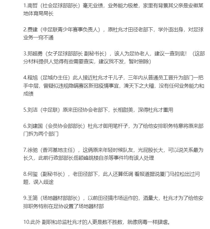 国家体育总局副局长杜兆才涉嫌严重违纪违法,目前正接受纪律审查和监察调查。据媒体人冉雄飞披露,杜兆才几乎在足协所有部门都安插自己人,这些人大多不懂足球,没有任何足球行业的管理经验和业务能力。a.top