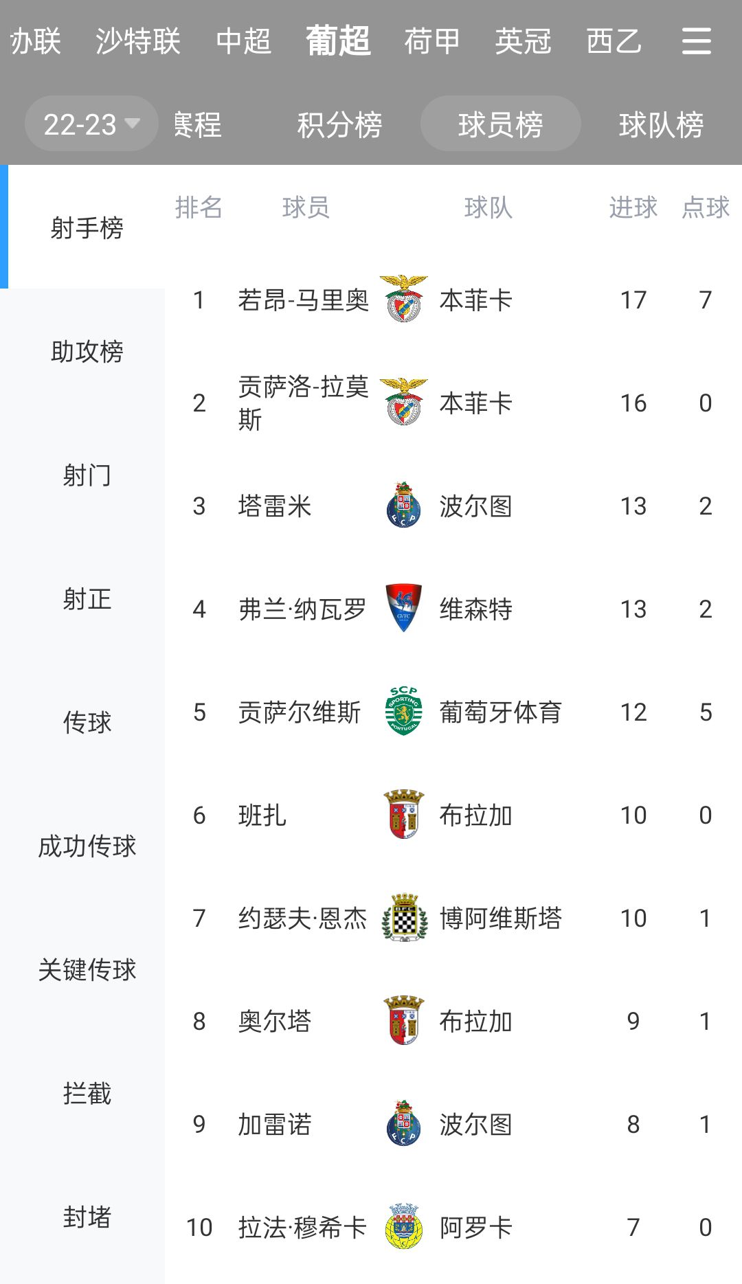 玩球网4月2日讯本菲卡目前领跑葡超榜首,射手榜前两名也均为本菲卡球员,分别是打进17球的若昂-马里奥和16球的贡萨洛-拉莫斯,不过马里奥的进球中包含了7粒点球。今年30岁的若昂-马里奥在2021年与国