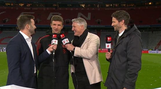 玩球网4月2日讯德甲第26轮,德国国家德比拜仁主场4-2战胜多特。本场比赛穆勒梅开二度帮助球队获胜。赛后穆勒在接受采访时,谈到了自己本场比赛进球很开心。拜仁名宿施魏因斯泰格对此调侃道:“今天你们4-2