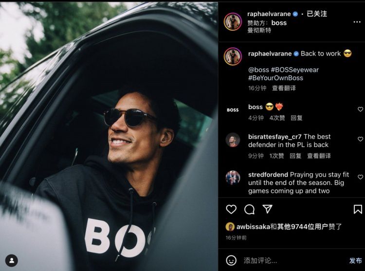 玩球网3月30日讯随着国际比赛日结束,各联赛战火重燃。球员们也陆续返回俱乐部开始备战。曼联中卫瓦拉内也返回了卡灵顿基地,准备随球队一起训练。他在社媒上晒出了戴墨镜准备下车的照片,定位在了曼彻斯特,并写