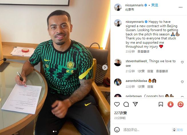 玩球网3月30日讯今天,正式与国安续约的李可,更新了个人社媒,表达了自己的续约感受。李可在社媒晒出了他的续约照,他配文写道:“很高兴与国安完成了续约,期待新赛季回到球场!谢谢在我受伤期间的不离不弃并且