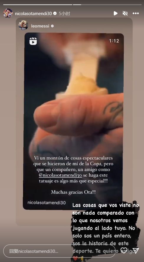 玩球网3月31日讯奥塔门迪此前将梅西文在身上,梅西对此发文感谢了自己的国家队队友,奥塔门迪回应了梅西的感谢。“你看到的事情(奥塔门迪文梅西)与我们在你身边踢球相比根本算不了什么,你不仅是这个国家也是足