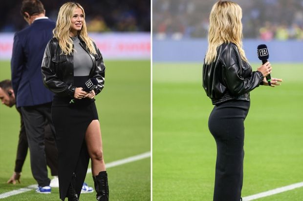 玩球网4月4日讯意甲最新一轮,AC米兰4-0大胜那不勒斯。已怀孕的卡里乌斯女友迪莱塔仍到现场报道了本场比赛。迪莱塔就职于体育流媒体公司DAZN,负责意甲方面的报道。迪莱塔在今年初公布了和卡里乌斯的恋情