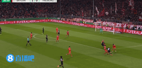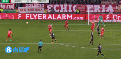 玩球网4月5日讯德国杯1/4决赛,拜仁vs弗赖堡。第27分钟,拜仁1-1被弗赖堡扳平,霍夫勒轰出世界波洞穿球门。