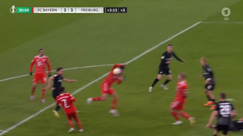 玩球网4月5日讯德国杯1/4决赛,拜仁1-2遭弗赖堡逆转绝杀,止步八强。第92分钟,穆西亚拉手球送点,霍勒点射破门,拜仁1-2遭绝杀。