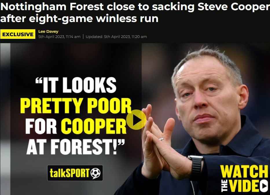 玩球网4月5日讯英媒talkSPORT报道,诺丁汉森林即将解雇一线队主帅库珀。库珀将成为本赛季第14位离任/第13位被解雇的英超主帅。今天凌晨的英超补赛,诺丁汉森林1-2不敌利兹联。目前积分榜上,诺丁