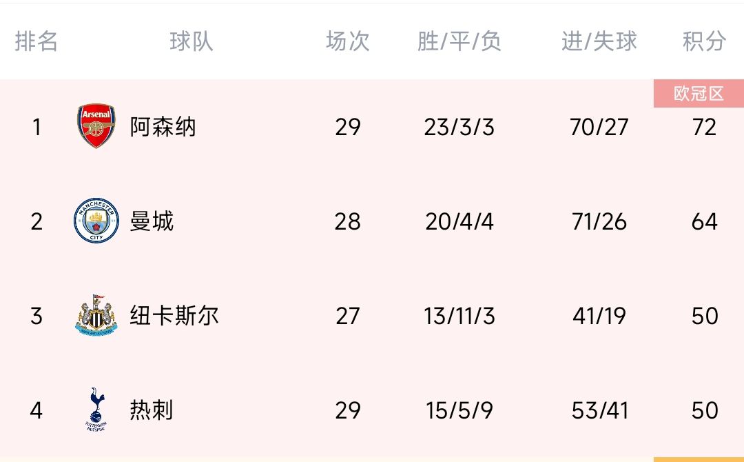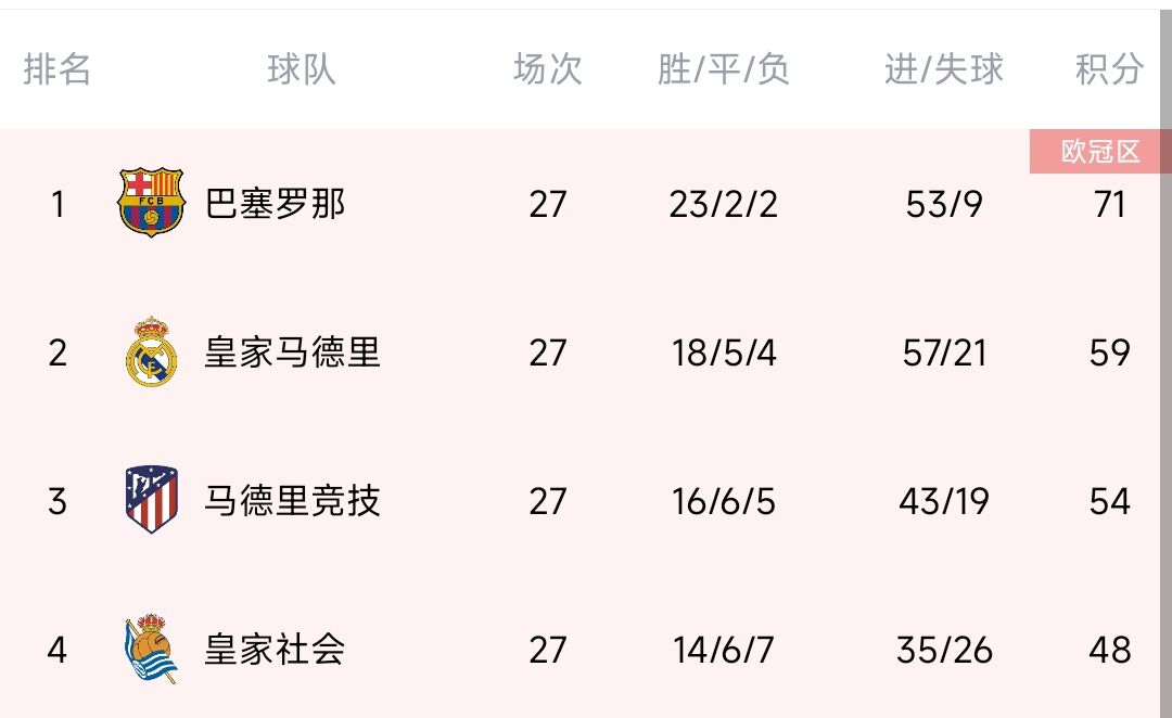五大联赛目前均进入了最后的冲刺阶段,各国的争冠情况也比较清晰。 意甲的那不勒斯与西甲的巴塞罗那均领先第二名球队10多分,目前两队夺冠的几率非常大。 英超则是阿森纳与曼城双雄争霸,两队之间也还有一次正面交锋,冠军鹿死谁手还不好说。 德甲则是拜仁和多特你追我赶,拜仁仅领先后者2分。此外第三的柏林联合也只落后拜仁4分。 法甲巴黎虽然领先第二名六分,但是最近遭遇主场两连败,夺冠之路遭遇了小坎坷。 五大联赛积分榜前四↓ 英超 西甲 意甲 德甲 法甲 |