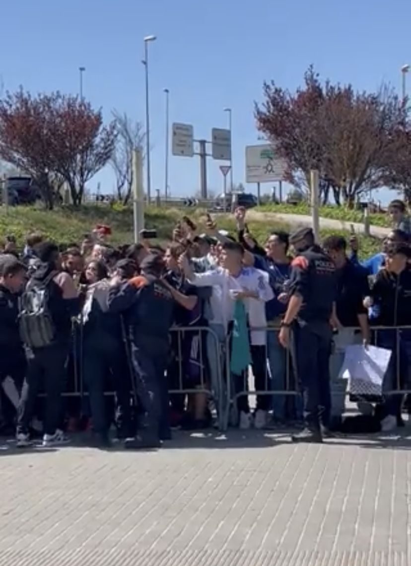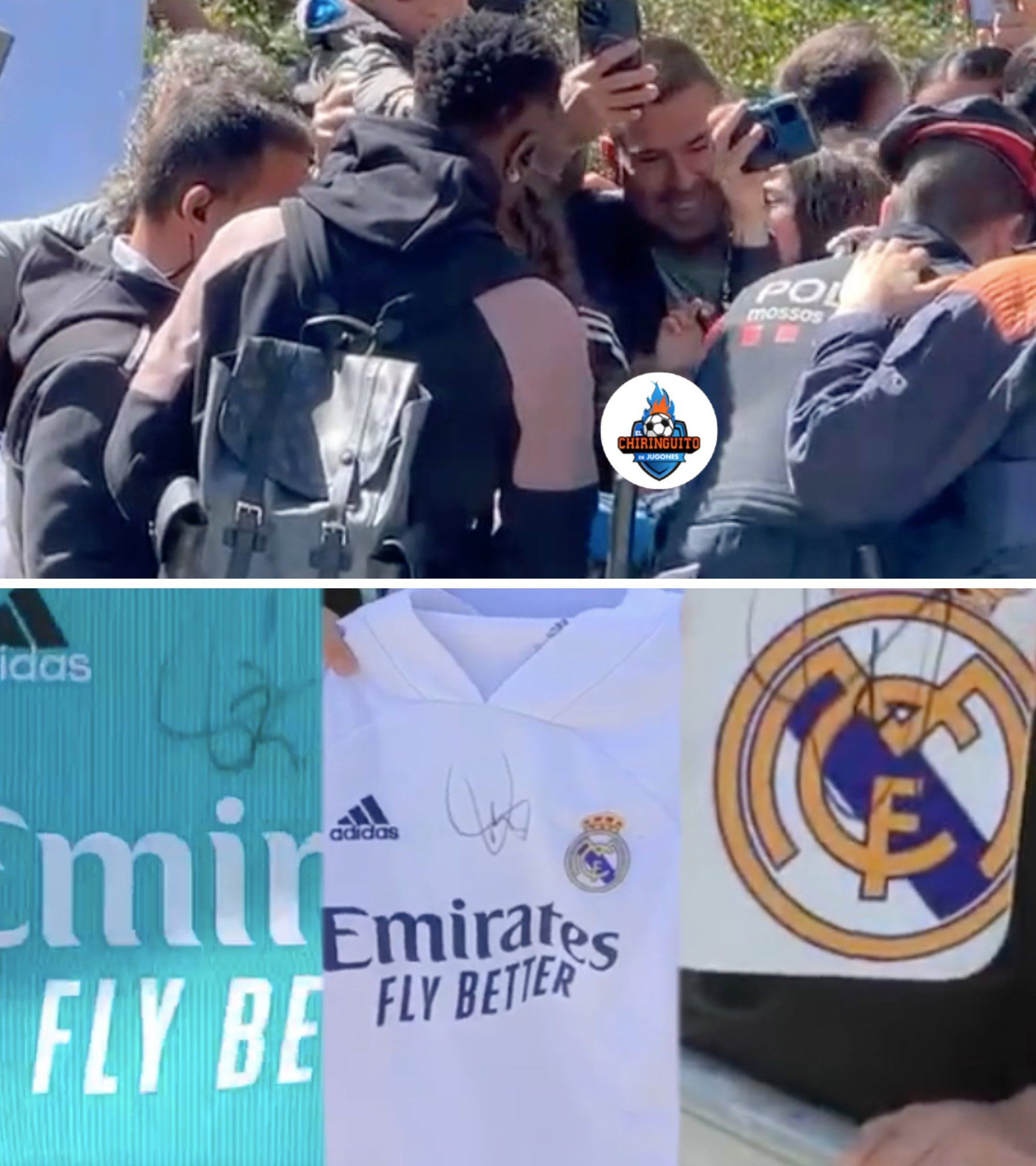 火!巴塞罗那当地球迷排队想要维尼修斯签名????来看看小熊手迹