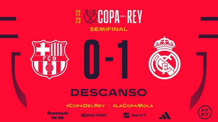 玩球网4月6日讯北京时间4月6日03:00,国王杯半决赛次回合巴萨主场迎战皇马的比赛,上半场维尼修斯推射破门,双方火药味十足,半场结束,巴萨0-1皇马。 比赛关键事件: 第46分钟,皇马先下一城!反击机会维尼修斯中路弧顶斜传本泽马后者回传维尼修斯点球点附近推射被孔德挡了一下后滚入球网,巴萨0-1皇马。↓ ↓ ↓ 比赛焦点瞬间: 第3分钟,加维禁区右路横传疑似打在封堵的阿拉巴手上,裁判没有表示。↓ ↓ 第12分钟,皇马反击机会罗德里戈右路突破到禁区下底传中到门前阿劳霍抢在维尼修斯前做出关键封堵。↓ 第25分钟,卡瓦哈尔右路一脚直塞球到禁区罗德里戈稍稍慢了半拍。↓ 第27分钟,维尼修斯和加维发生小冲突双双吃到黄牌。↓ 上半场补时3分钟,第45分钟,巴尔德左路传到禁区莱万凌空打门被库尔图瓦神勇扑出。↓ 半场结束,巴萨0-1皇马。 双方首发以及换人信息: 巴塞罗那首发:1-特尔施特根、28-阿莱士-巴尔德、17-马科斯-阿隆索、23-孔德、4-罗纳德-阿劳霍、5-布斯克茨、19-凯西、20-罗贝托、30-加维、22-拉菲尼亚、9-莱万多夫斯基 替补未出场:13-伊尼亚基-佩尼亚、36-阿尔瑙-特纳斯、10-法蒂、11-费兰-托雷斯、18-阿尔巴、24-埃里克-加西亚、29-马克-卡萨多、32-巴勃罗-托雷、38-安赫尔-阿拉尔孔、39-佩德罗拉、40-加里多 皇家马德里首发:1-库尔图瓦、2-卡瓦哈尔、3-米利唐、4-阿拉巴、12-卡马文加、8-托尼-克罗斯、10-莫德里奇、15-费德里科-巴尔韦德、21-罗德里戈、20-维尼修斯、9-本泽马 替补未出场:13-卢宁、26-路易斯-洛佩斯、5-巴列霍、6-纳乔、7-阿扎尔、11-阿森西奥、16-奥德里奥索拉、17-巴斯克斯、18-楚阿梅尼、19-塞瓦略斯、22-吕迪格、24-马里亚诺-迪亚斯 (Anson Kong) |